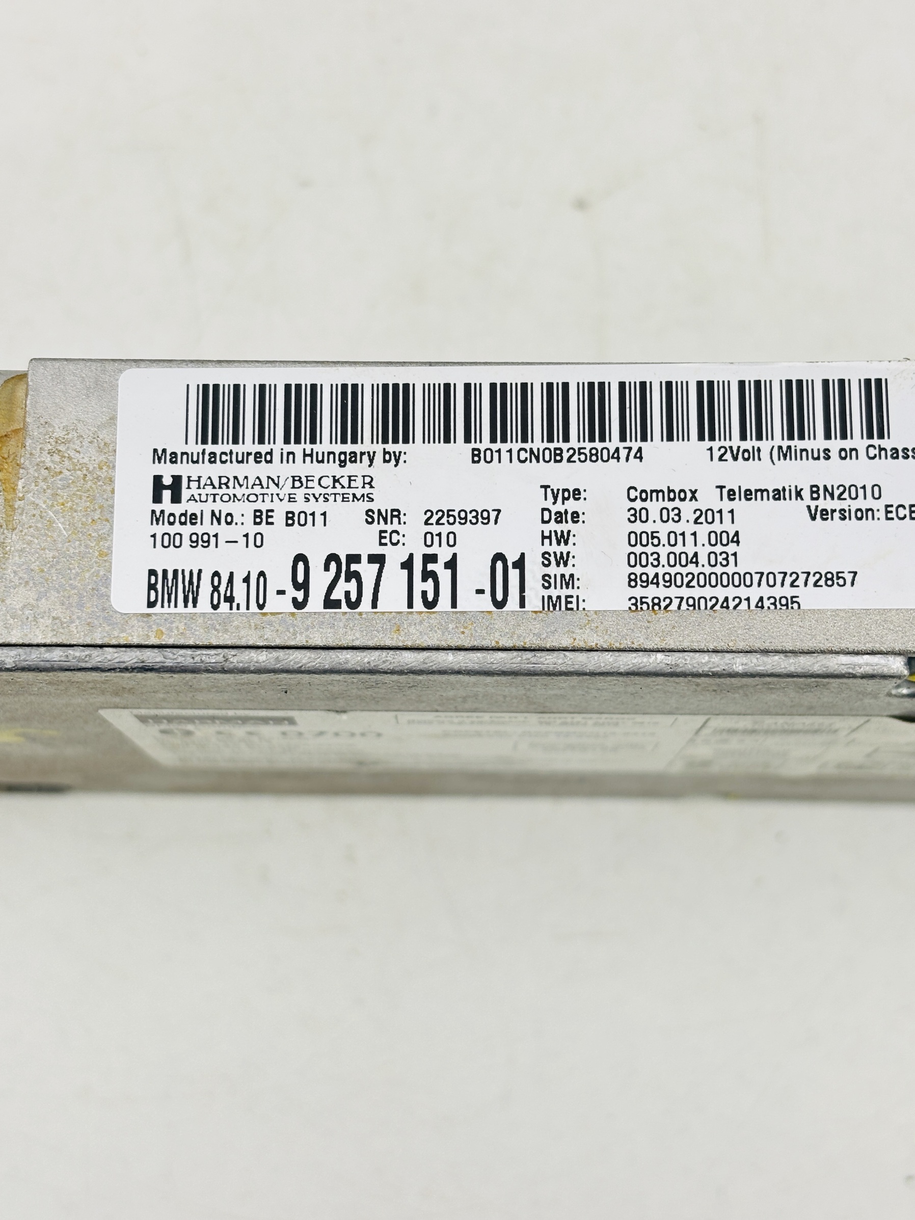 Unidad de control combox BMW 520d 9257151. Números de piezas de repuesto originales del fabricante o compatibles, incluyendo pero no limitado a las siguientes referencias: 9257151, 84109257151.